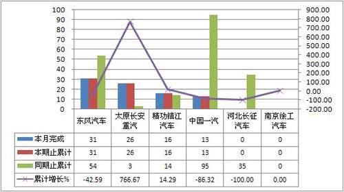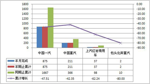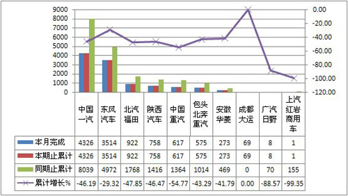 40吨<准拖挂车总质量的产销量分别为1396辆和1125辆,分别同比累计增长-44.97%和-47.45%。