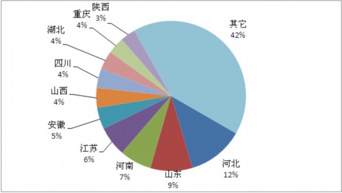 从区域销量来看,2月份主流重卡企业在河北地区的销售量占总量的12%,成为重卡企业全国最大的区域市场;第二至第五的区域市场分别是山东、河南、江苏、安徽,前五区域市场占据了全国市场39%的市场份额。