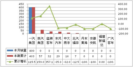 中国汽车工业协会的统计数据显示,2013年3月,全国累计生产客车底盘6554辆,环比增长118.18%,同比下降-6.30%;累计销售客车底盘6564辆,环比增长99.7 %,同比下降-6.47%。