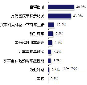 调查进一步显示,在上述有租车意愿的被访者中,“自驾出游”和“方便国庆节探亲访友”成为他们租车的两大主要原因。 (见图4)