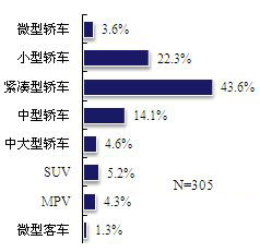 从车辆级别来看,被访者所租到的车型大多为“紧凑型轿车”和“小型轿车”。 (见图9)