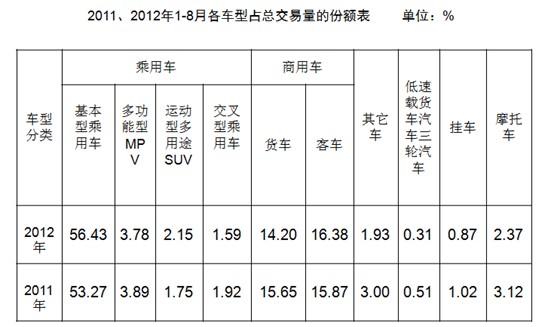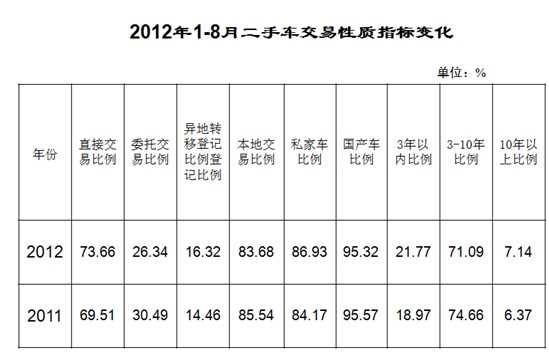 对比去年1-8月,今年1-8月,二手车的品种结构及交易性质指标发生了一定的变化。