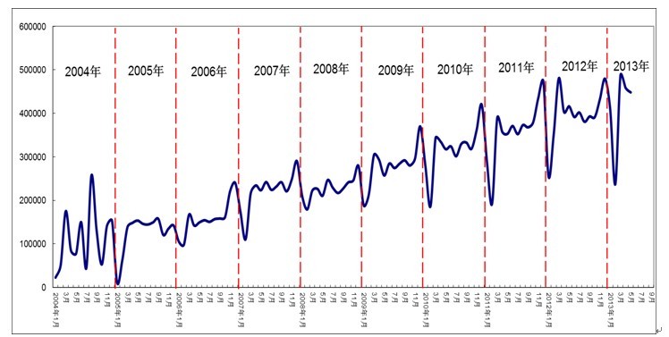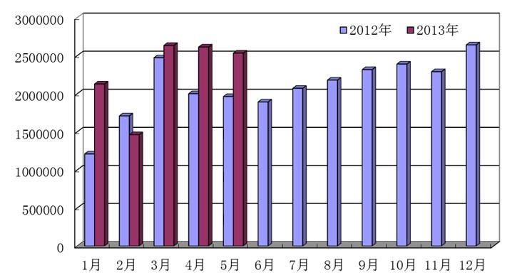 据其介绍,2013年5月,二手车交易量为44.84万辆,环比下降 2.25% 。交易额253.34亿元,环比回落 3.04% 。其中,基本型乘用车 25.88万辆,环比下降 0.57%,交易额 149.57亿元。客车 6.57万辆,环比下降 0.07%,交易额 26.11亿元。载货车 6.24万辆,环比下降 5.35%,交易额 27.83亿元。越野车 1.42万辆,环比增长 3.15%,交易额 23.08亿元。