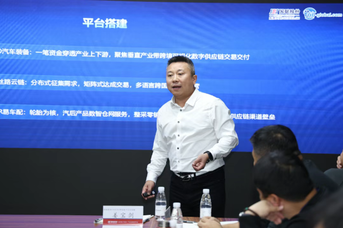 轮胎世界网市场总监冯立华,九识智能大客户负责人黄超,山东油电轮供应链有限公司董事长陈彬,油电轮供应链北京办事处关天奇;国联股份涂多多高级副总裁安珅、跨境技术中心总经理魏立峰,以及CNAUTO执行总裁许建,跨综服平台总经理姜宝剑,副总裁刘雷,事业部跨境出口总经理才楠、销售总监袁家旭,参与了此次座谈交流。