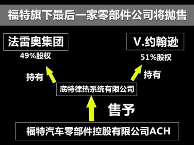 2005年,福特汽车为防止其最大零部件供应商伟世通达业务缩水造成零部件供应问题,宣布收购旗下17家工厂,组建了自己的零部件业务公司,在当时取名为ACH公司。但近年来,欧洲及本土市场经济持续低迷,福特不得不将其零部件公司重组及抛售。