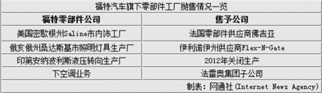 福特停止零部件业务 抛售17家工厂