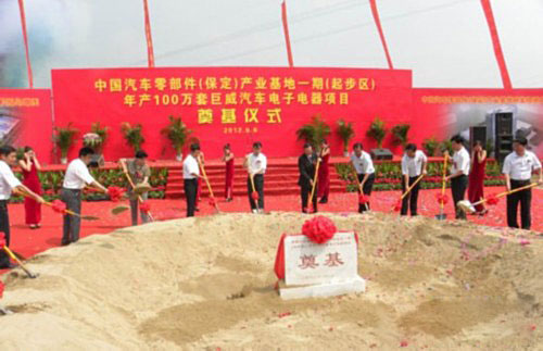8月6日,中国汽车零部件(保定)产业基地一期巨威汽车电子电器项目,在河北省保定市清苑经济开发区举行开工奠基仪式,它标志着规划建设100亿元,占地3000亩的保定汽车零部件产业集群正式启动建设。