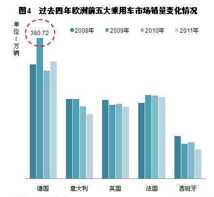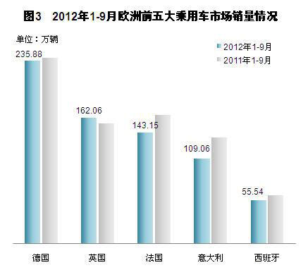 法国2009年的乘用车销量同比增长10.7%至226.87万辆,超过意大利和英国,仅低于德国。此情况持续至2011年。今年1-9月,该国乘用车销量下滑13.8%,至143.15万辆,不仅低于德国市场,同时也低于英国市场。