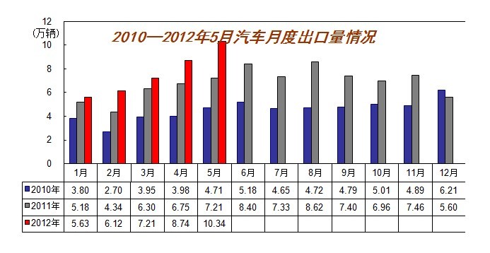 据中国汽车工业协会统计的数据,5月全国汽车整车企业出口汽车10.34万辆,环比增长18.2%,同比增长43.4%。月度汽车出口首次突破10万辆,继4月后再创历史新高。