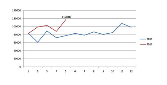 海关数据显示,5 月,全国汽车进口量为11.7 万辆,同比增长为62.0% ,其中乘用车进口11.48 万辆,同比增长 51.8%。