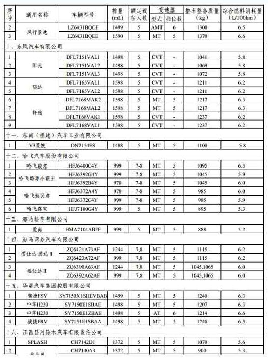 节能汽车目录 燃料消耗量 节能产品