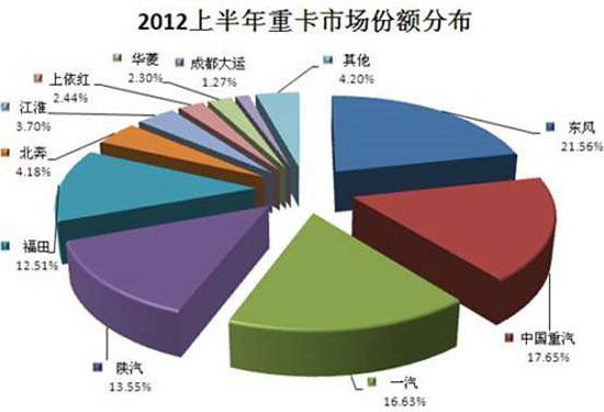 北方奔驰、江淮、上汽红岩依维柯、华菱、大运五家企业,今年上半年的市场份额共计为13.89%,与去年的17.93%相比,下降了4.04%。