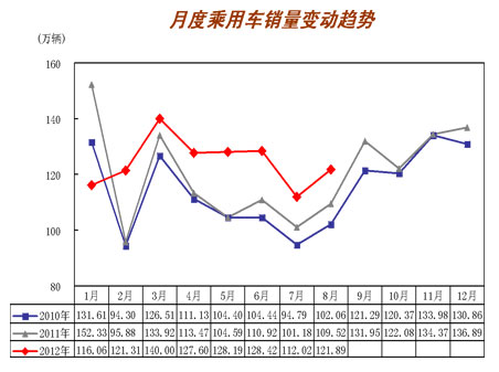 9月10日,中国汽车工业协会发布的最新数据显示,8月,乘用车市场需求稳中有升,当月销量环比和同比均呈一定增长;1-8月,乘用车销量同比增长接近8%,基本保持了企稳回升态势。