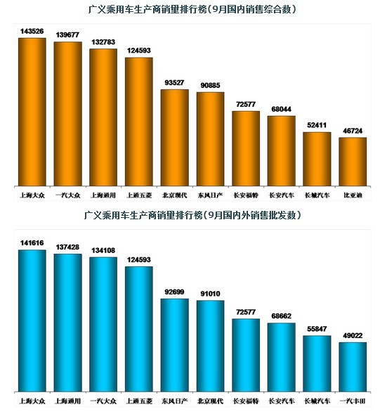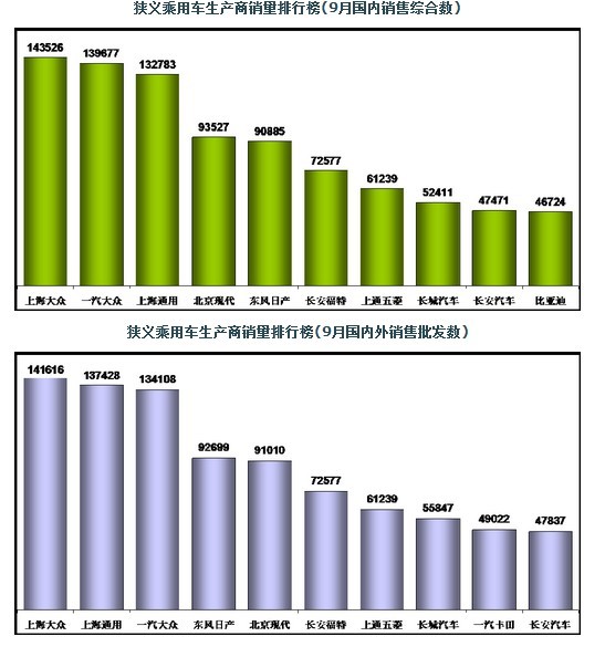 由于9月市场太火,本月出现了销大于产的情况,厂家库存大幅减少,但在季度末,经销商的库存也增加,不过比预想的小一些。由于国际环境差强人意,加之车商出口机制进步不大,乘用车和汽车出口已经连续5个月同比负增长,出口正增长的只有6家内资企业。虽然各企业均在月初宣布提前实施三包,还有少数用户担心,这就会略增加10月份的销量。