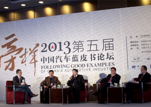 “2013第五届中国汽车蓝皮书论坛”3月30日在北京开幕。此次论坛主题为“榜样”,旨在向中国汽车产业诞生60周年以来做出贡献的人们致敬。活动主会场由凤凰卫视知名主持人闾丘露薇主持,国家相关部门领导,汽车业权威专家,国内主流整车企业及汽车零部件企业高层领导,以及媒体等500余人参会。