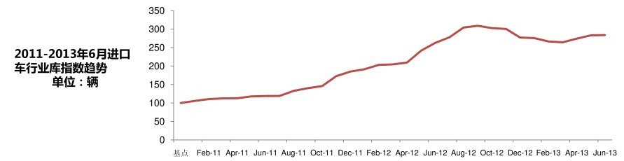 进口车库存在2012年上半年达到高点后,四季度和今年一季度处于下调供给、降低库存阶段,二季度行业库存总量有多反弹,行业库存压力仍较大,特别是进口车经销商。