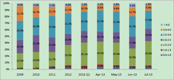 王存介绍道,2013年7月,3.0L以下份额达到88.7%,比2012年全年的84.8%提升3.9个百分点。
