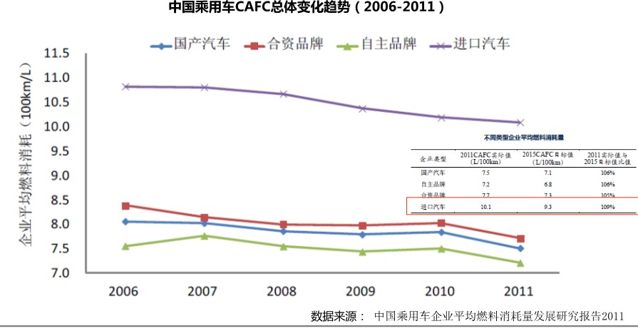 据分析,由于《乘用车燃料消耗量限制》的正式实施,进口汽车的排量下移趋势也会进一步加快。数据显示,2011年进口车行业平均燃料消耗量与目标值的比值为109%-110%,孙勇预测称,这一比值到2012年能够达到109%,这会导致国外车商加快向中国引入混合动力汽车的步伐。