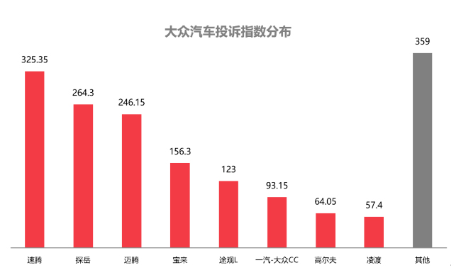 其中,速腾和宝来的投诉指数,环比均实现超7倍暴涨。
