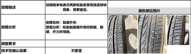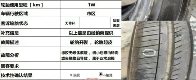 但检测报告显示,轮胎“掉渣”是外物刺破、割伤等外力导致,未鉴定为假冒产品。