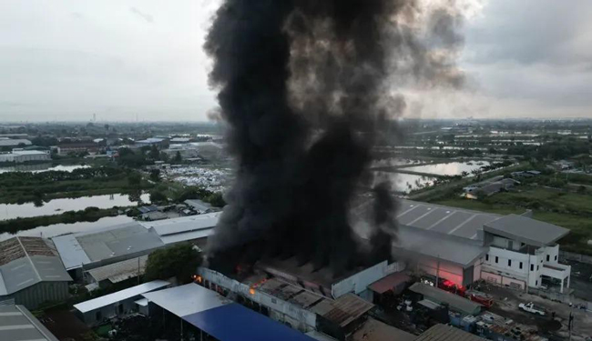 11月12日,泰国北榄府一家轮胎回收厂发生火灾,散发出大量毒雾。