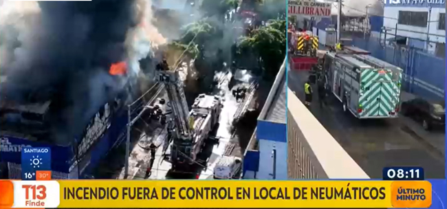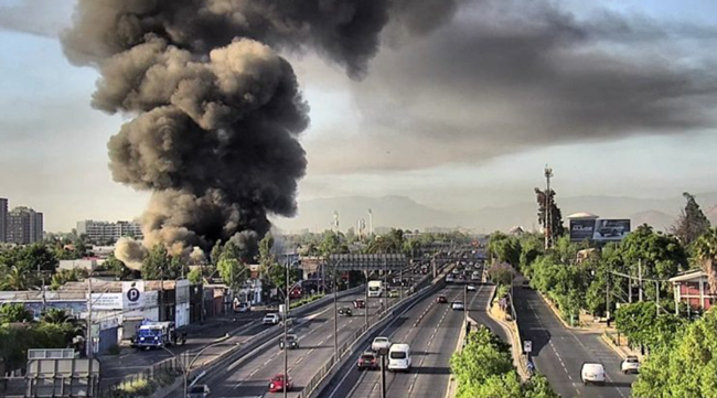11月22日早上7点,智利圣地亚哥大都会区一个轮胎仓库,突发大火。