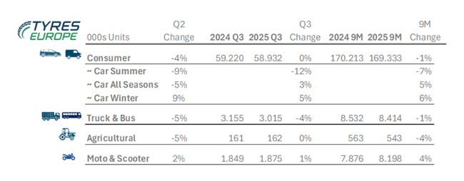 根据该协会发布的报告显示,今年第三季度,欧洲替换轮胎市场总体保持稳定,但卡客车胎需求依然疲软。