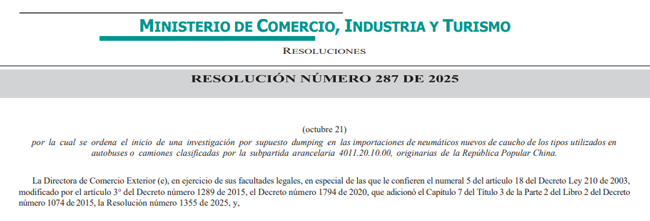 日前,哥伦比亚商务、工业和旅游部,在官方公报发布第287号公告。