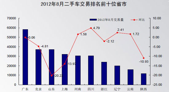 从重点交易市场来看,北京和山东8月份交易量的下降,拖了全国二手车市场的“后腿”。此外,上段时间,由于陕西西安出现限牌动向,对区域市场的交易行为和交易心态都形成了一定影响,所以该地区出现一定波动。