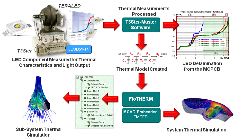 图4 – 完整的热测量与光学测量/标定如今已被实际应用于 LED 产品设计、生产质量以及无损故障分析。