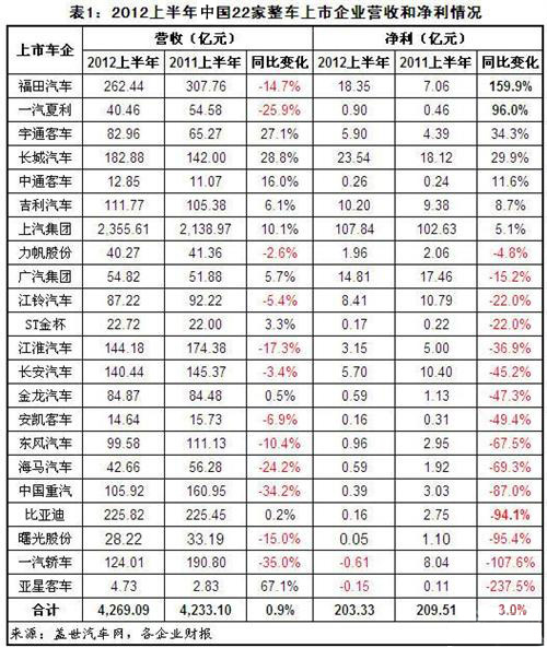 这22家上市汽车企业中,今年上半年,净利润增长的7家企业分别是:长城汽车、福田汽车、吉利汽车、上汽集团、一汽夏利、宇通客车和中通客车。