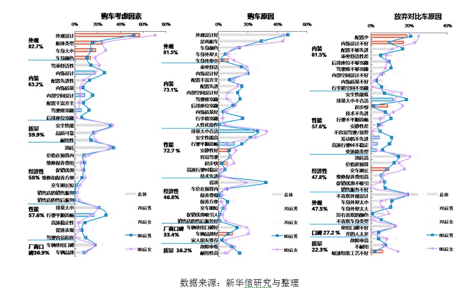 对“80后”男性来说,驾驶感受是他们选车的关键驱动因素;对“80后”女性来说,车好看、好开是基础,品质是关键。
