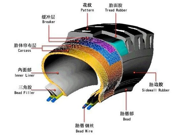 与斜交胎不同,子午线轮胎的帘线不是相互交叉排列的,而是与外胎断面接近平行,像地球子午线一样排列。与斜交胎相比,子午线轮胎滚动阻力低、节省油耗、耐磨耐刺、缓冲力强、行驶时变形小、生热低、高速行驶更加安全,子午线轮胎的制造技术也相对复杂,成本相对较高。