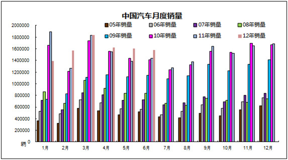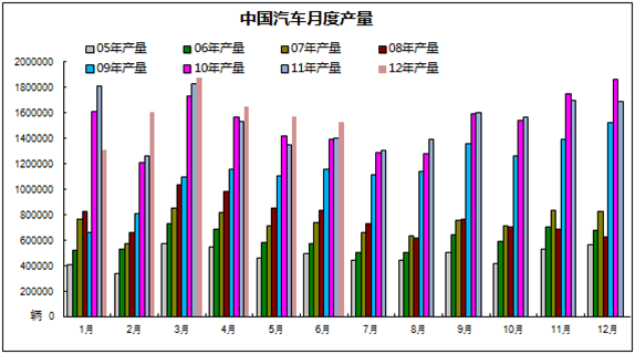 据中国汽车工业协会统计,2012年1-6月,汽车产销量分别为800.03万辆和802.35万辆,同比分别增长3.19%和1.70%。其中,乘用车产销634.07万辆和633万辆,同比增长7.05%和5.48%;商用车产销165.96万辆和169.35万辆,同比下降9.33%和10.31%。