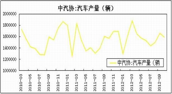 国内方面,中国10月份的汽车产量为158.7万辆,环比减少7.39万辆,同比增加1.6万辆;销量为160.6万辆,环比减少1.14万辆,同比增加8.1万辆。目前汽车的销量环比出现了下滑,在“金九银十”的两个月里,汽车销量仍然不是很理想。预计在12月份汽车的销量将逐渐下滑,这主要是考虑到“汽车下乡政策”恐难出台,汽车销售旺季已过,需求拉动不足。