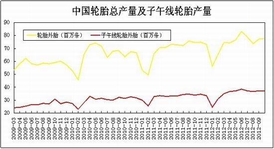 中国10月份的轮胎产量为7767万条,同比增长1.2%,环比(9月轮胎产量6818万条)增长13.92%。