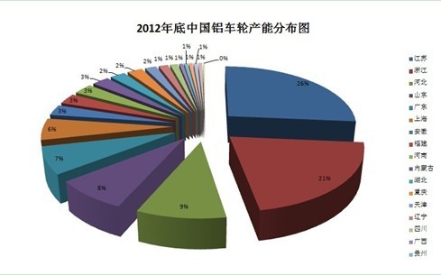 中国铝车轮产能较大的省份主要包括江苏、浙江、河北、山东、广东、上海,其占比接近80%。(如下图)