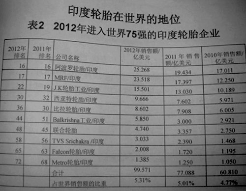 此外,外资企业普利司通、固特异、邓禄普早已在印度设厂。最近两年,米其林、大陆和横滨也已经正式进入印度轮胎市场。