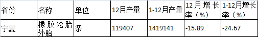 中商情报网数据显示,2012年宁夏橡胶轮胎外胎产量为1419141条。