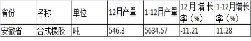 中商情报网数据显示,2012年安徽省合成橡胶产量为5634.57吨。