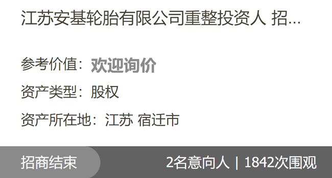 2025年2月28日,法院受理安基轮胎破产清算一案。