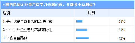 众所周知,国内轮胎企业的现状是多、小、散,那么,本土轮胎企业是否应该效仿普利司通,开辟多个赢利点?受访者对此见仁见智,各观点之间支持率的差异也并不大。
