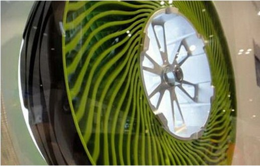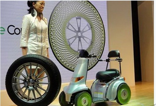 在2012广州车展上,普利司通展台上展示的非充气概念轮胎格外抢眼。