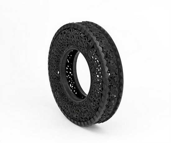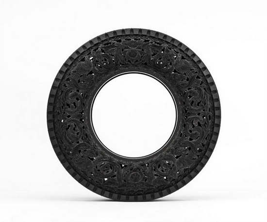来自比利时的设计师 Wim Delvoye 创建了一个令人惊叹的装饰轮胎艺术品集,命名为“Pneu ”。这里收藏的作品,是一些手工雕刻复杂图案和花卉图案的废旧汽车轮胎。