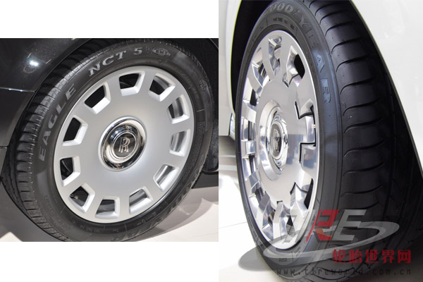 新款幻影与第一代幻影相比,不仅外形相差特别大,其车轮的差异也一目了然。相隔几十年,其轮胎与轮毂及其他变化,都引来参观者的啧啧赞叹。
