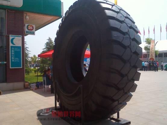 在近日落幕的第三届中国(广饶)国际橡胶轮胎暨汽车配件展览会上,一个高达3米左右的特大型轮胎矗立在展馆前,十分引人注目。