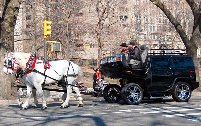 据了解,国外某人筹集了1.5万美元购买了一辆二手悍马H2进行改装,其对原车的动力系统进行了调整,但随之而来的并不是功率和扭矩的提升,因为车主反其道而行拆掉了车辆的动力系统,将这台凶猛的H2改造成了一辆真正的马车,倡导低能耗。