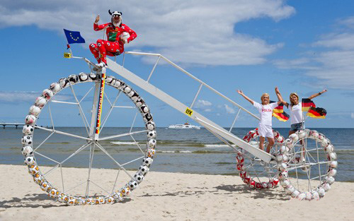 日前,德国设计师Dieter Senft 设计出一款奇特的三轮车,这辆有着超大前轮的三轮车车轮填充了100个足球,个性十足。