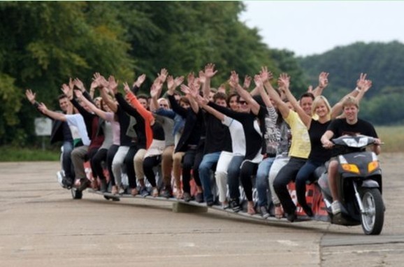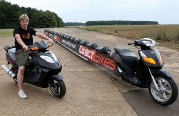 31岁的英国Colin Furze 弄出来了一辆可载25人,长22米的摩托车。这也是目前世界上最长的摩托车。据说装满人该车仍旧可以正常行驶,不过速度不到35mph。感觉正常,并不是缓慢地爬行。