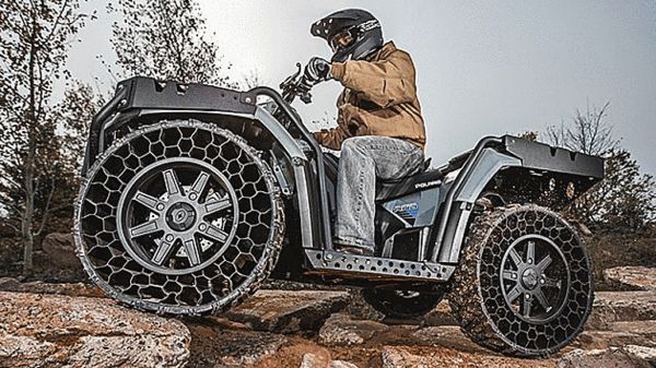 观点:非充气轮胎推出已经有相当一段时间了,比起汽车,在ATV上使用或许更有重量上的优势,显然就舒适性而言,它更适合工作类型的车辆。